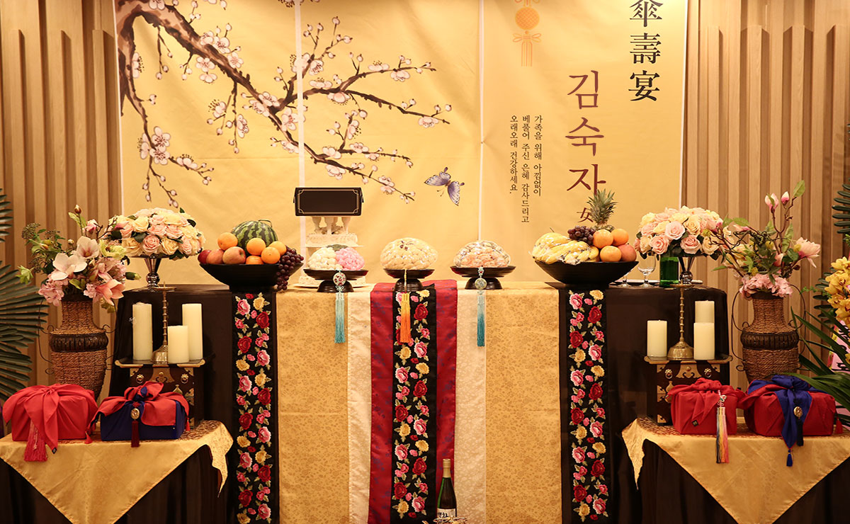 생신연 Family Party Family Party 생신연 존경하는 부모님의 만수무강을 기원하는 뜻깊은 자리를 준비합니다. 존경하고 사랑하는 부모님을 위해 감사와 기쁨을 전하는 날, 두리원에서 더 특별하게 마련해드립니다. 여유롭고 품격있는 연회장, 고급스럽게 준비한 음식으로 주인공과 하객분들께 프리미엄 생신연파티가 되도록 예의를 다합니다. Floor3F / 4F