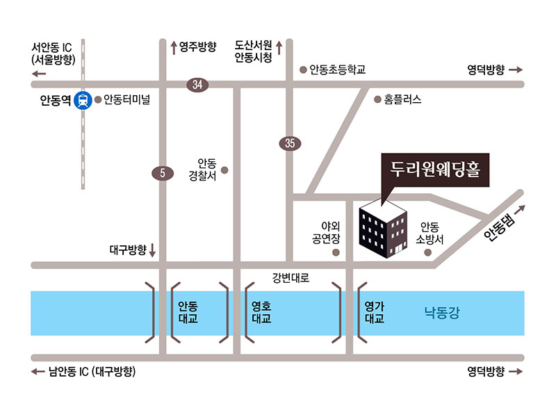 영동고속도로(강릉방면) → 만종JC → 중앙고속도로(안동방면) → 서안동IC → 34번국도 → 안동댐방면 - 대전방면